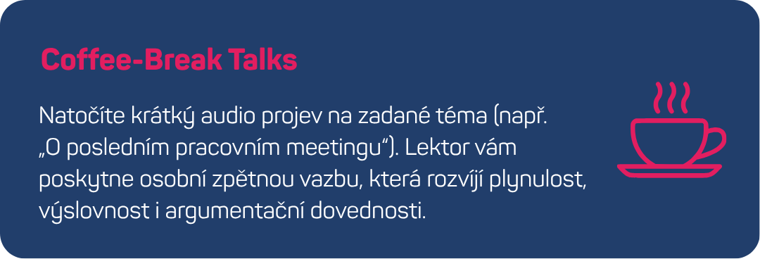 Každý úkol prochází lektor a doplní osobní komentář s konkrétními tipy, jak zlepšit slovní zásobu, výslovnost nebo argumentaci.